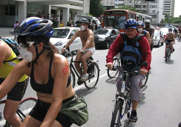 Na manifestação de São Paulo, realizada na Avenida Paulista, o elevado número de policiais que acompanhavam o trajeto, aproximadamente 40, inibiu os ciclistas. Boa parte dos manifestantes percorreu o trajeto usando roupas de praia, como sungas e biquínis. Também era possível encontrar homens que preferiram pedalar de cuecas. Os demais utilizaram roupas de ciclista. Alguns manifestantes usaram máscaras contra a poluição.