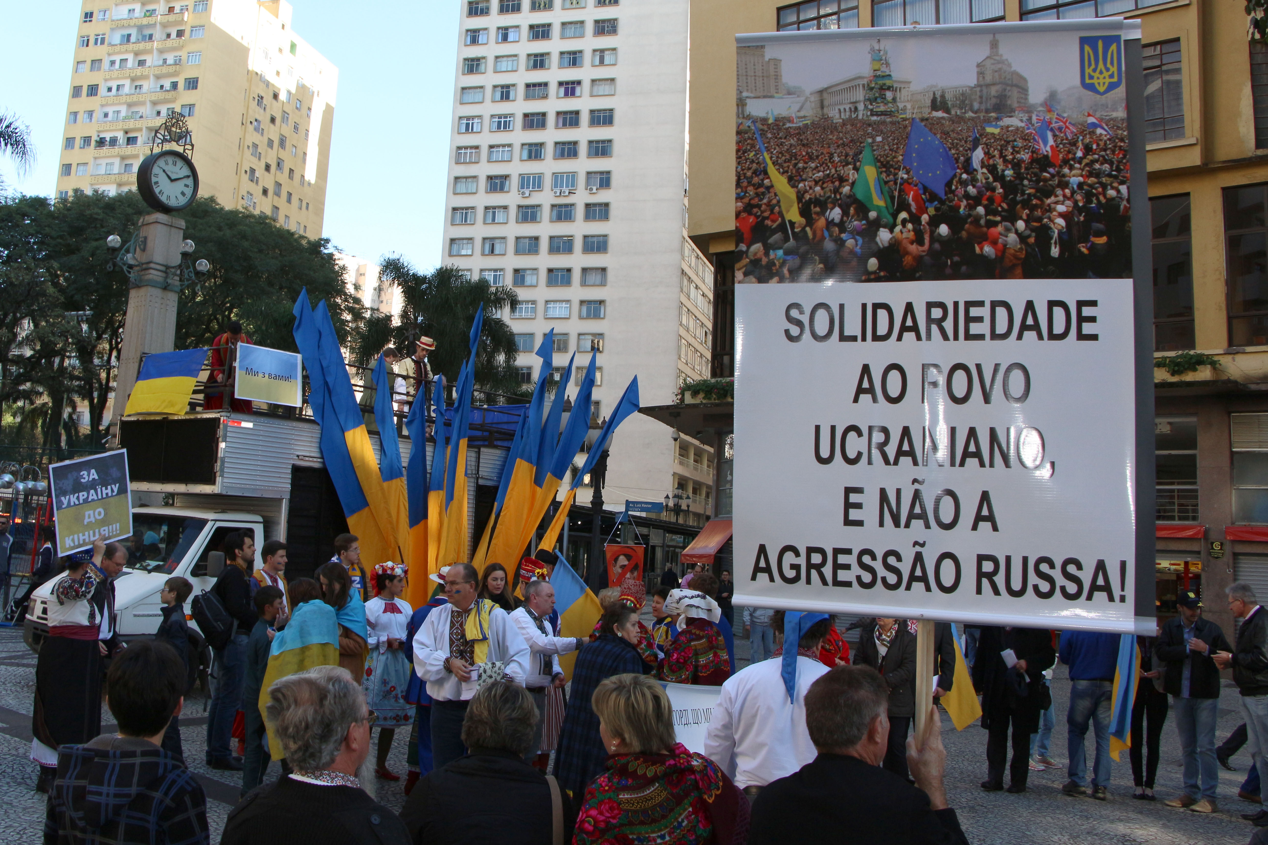 Em torno de 300 membros da comunidade ucraniana participaram neste sábado (19) de uma manifestação em Curitiba em apoio ao país europeu. Eles se concentraram na região da Boca Maldita. A Ucrânia passa, desde o início de 2014, por estado de tensão por causa das reações dos rebeldes pró-russos presentes no território daquele país.