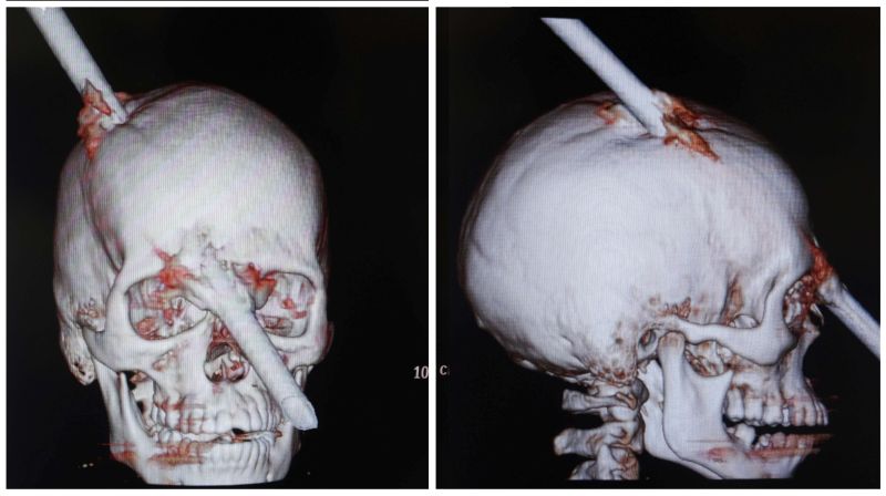 "Por três centímetros, ele estaria sem mexer os braços e as pernas. Se fosse apenas mais um centímetro para a direita, ele teria perdido um olho".
