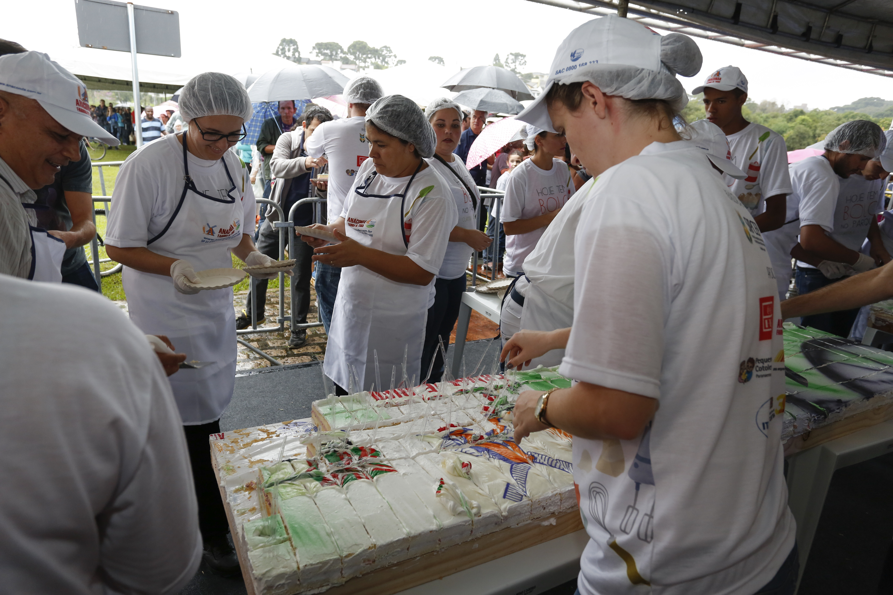 O casal Anadir Maria e Pedro Silveira veio de Joinville (SC) e chegou cedo ao Barigui para poder desfrutar da iguaria, mas foi a servente de limpeza Maria Olivina quem ganhou o primeiro pedaço das mãos do prefeito. “Valeu a pena chegar às 10 h no parque”, comemorou Maria. O “Parabéns a você” e a distribuição do bolo ocorreram a partir das 15 h. Mesmo com chuva, o metalúrgico Anderson Rangel não desanimou e levou a família para participar da festa. “A chuva não atrapalha, o curitibano já está acostumado com a presença dela”, disse.