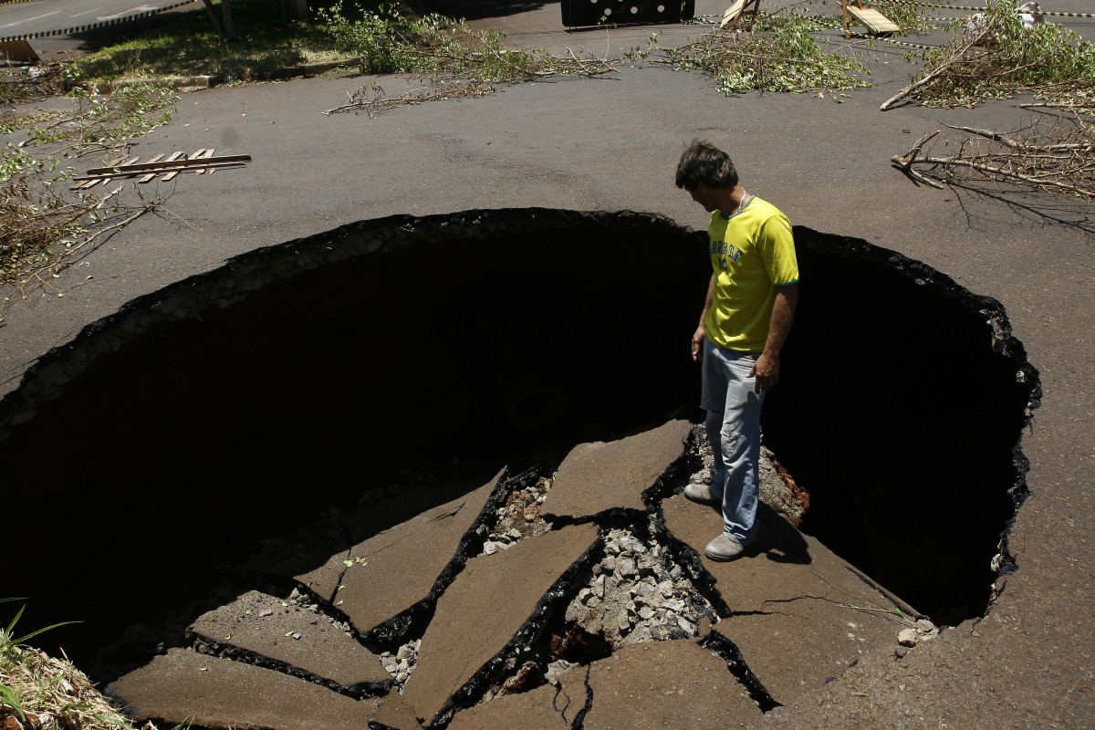 As fortes chuvas da última quarta-feira (29) causaram muito estrago em Londrina. Na Avenida Odilon Borges de Carvalho, no bairro Shangri-Lá "B", uma cratera surgiu logo após a chuva. O buraco, de aproximadamente 4 metros de diâmetro com mais de 1 metro de profundidade, assustou os moradores e motoristas da região. Por segurança, o trecho que dá acesso à Avenida Brasília foi isolado.