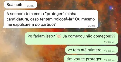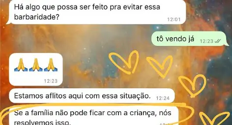 Em conversas de WhatsApp divulgadas pela deputada, o vereador explica o caso e afirma que, se a família não pudesse ficar com a criança, ele resolveria a situação de outra forma, mantendo a bebê com vida (imagem abaixo).