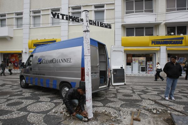 Pouco mais de um mês depois do acidente causado por um ônibus ligeirinho na Praça Tiradentes, em Curitiba, que matou duas pessoas e deixou 32 feridos, a prefeitura e a empresa Clear Channel, que administra o mobiliário urbano na cidade, ainda não tinham retirado parte do ponto danificado do local. Na madrugada de ontem, integrantes do Movimento Passe Livre aproveitaram o que restava do ponto para homenagear as vítimas. Fizeram uma cruz com a inscrição "Memoral vítimas do ônibus". Menos de 12 horas depois, funcionários da Clear Channel retiraram a homenagem.