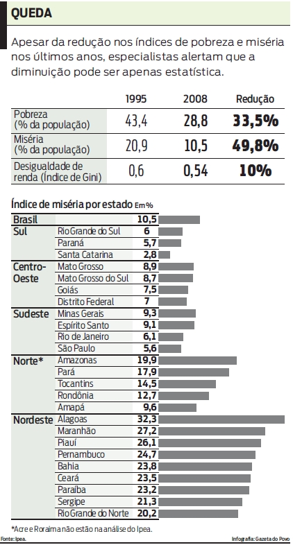 O problema é que justamente os estados que hoje têm o maior índice de pessoas vivendo na miséria serão os que precisarão de uma queda mais acelerada. Para a redução somente da pobreza, o desafio é ainda maior. Enquanto o Paraná, em 2016, não deverá ter pobres, em Alagoas este porcentual ficará em 35%.