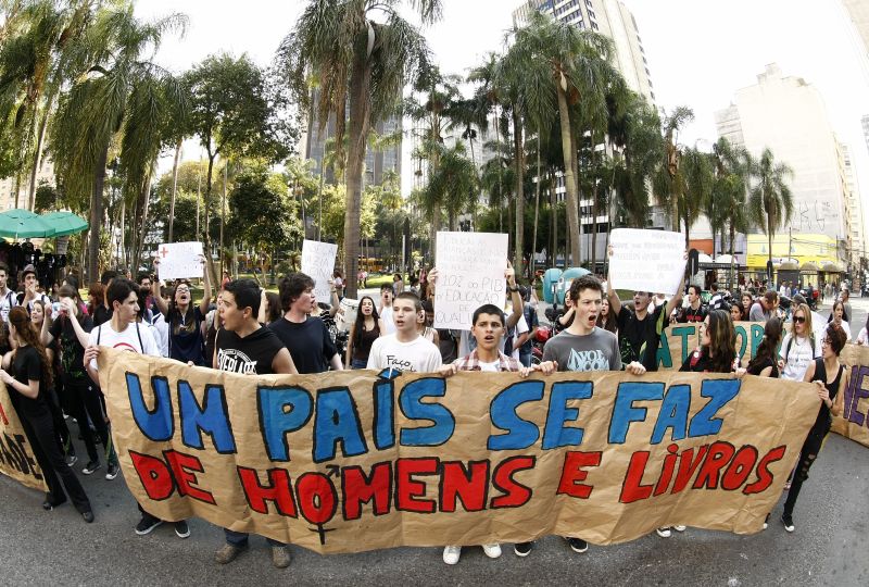 Estudantes de todo o país foram às ruas ontem para reivindicar mais atenção do poder público para educação. O evento "Mobilização geral dos estudantes brasileiros" foi organizado através do Facebook e teve mais de mil confirmações de presença. Em Curitiba, a representatividade dos estudantes foi pequena. Cerca de 40 jovens caminharam pelas ruas do centro da cidade com cartazes pedindo 10% do PIB para educação e melhores condições de trabalho. Segundo Ana Carolina Kummer, uma das organizadoras do protesto em Curitiba, o objetivo foi conscientizar a população. "Não podemos ser omissos", afirmou ela.