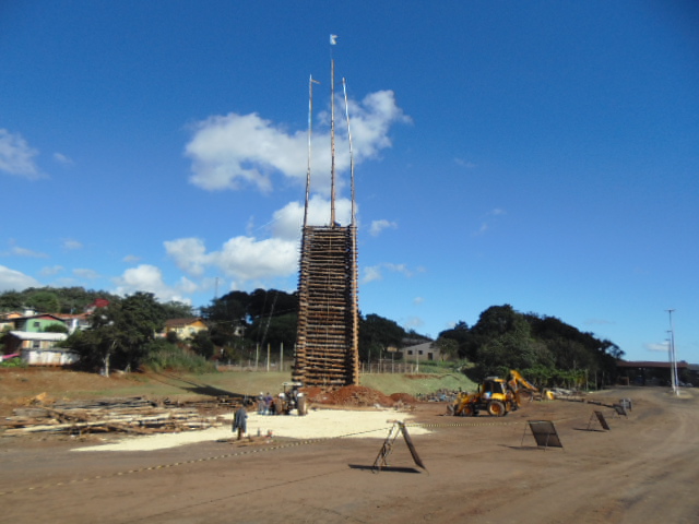 Em sua primeira edição, em meados dos anos 2000, a festa já contava com a icônica fogueira, que foi crescendo com o passar dos anos. Feita de madeira de Eucalipto com estrutura de cabos de aço, a obra diminuiu de tamanho em 2015 por questões de segurança. “A pira é construída pelos funcionários do pátio de obras da prefeitura, e começa a ser feita por volta de 50 dias antes do evento. Ela ficou pronta na segunda-feira (15)”, diz Alexandre Battistella, chefe de gabinete da prefeitura.