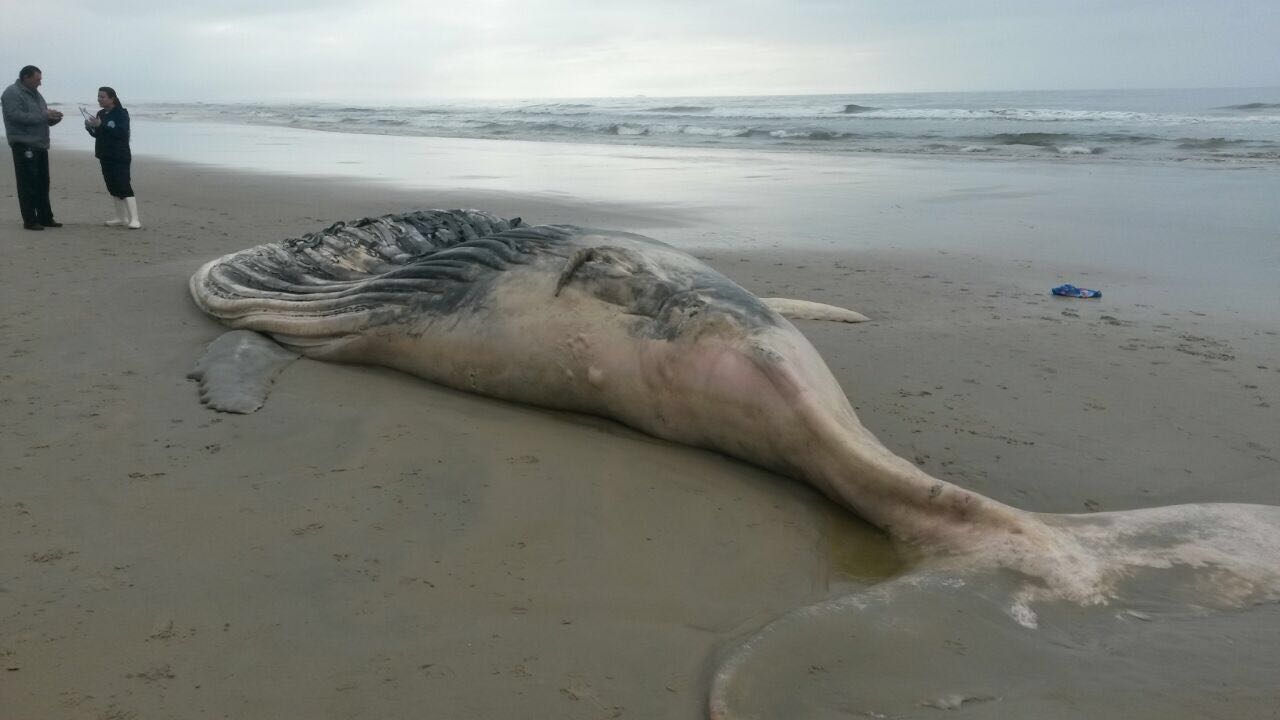 Um filhote macho de baleia jubarte foi achado morto na areia da praia Central de Matinhos, no litoral paranaense, por volta das 23h de quarta-feira (3). A área onde ele foi encontrado está interditada. De acordo com pesquisadores do Laboratório de Ecologia e Conservação da Universidade Federal do Paraná (UFPR), o animal já chegou à praia sem vida. Os pesquisadores passaram a manhã desta quinta-feira (4) medindo e pesando o animal e ainda decidem qual a melhor forma de remover o bicho, que tem nove metros de comprimento e pesa meia tonelada.