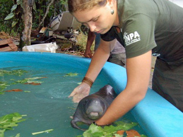Um filhote de peixe-boi foi resgatado nesta quinta-feira (7) por agentes da Associação Amigos do Peixe-boi (Ampa) no Parque Estadual do Rio Negro, na zona rural de Manaus (AM), e levado para a sede do Instituto Nacional de Pesquisas da Amazônia (Inpa). Acredita-se que o animal estava perdido, já que não há ocorrência de peixe-boi na região. O peixe-boi foi batizado de 'Baixotinho', tem 70 cm de comprimento, pesa 5,5 quilos e tem cerca de um mês de vida.