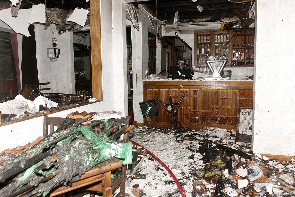 As chamas atingiram principalmente o teto do local. Algumas fagulhas chegaram a cair sobre um estabelecimento vizinho, o Bar Curityba. No total, o incêndio atingiu uma área de 300 metros quadrados. O fogo foi controlado às 2h20, com os bombeiros deixando o local por volta de 2h45. Sete viaturas deslocaram-se até o Kaffe e foram utilizados 16 mil litros de água no combate às chamas.