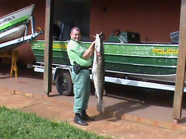 Dentro do barco usado pelos pescadores, os policiais da Força Verde encontraram 30 anzóis de galho, seis peixes da espécie pintado, um surubin e dois do tipo barbado. Além das marcas de anzóis, os peixes estavam com ovas, ou seja, prontos para reproduzir.