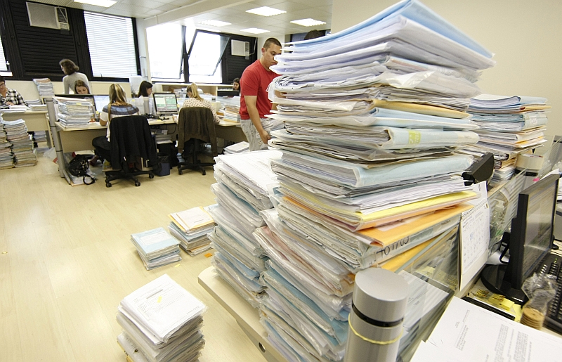 Um dos receios é em relação ao risco de incêndio em meio a tanto papel. "O pior da estrutura é a falta de espaço", relata a escrivã Silvia Gradowski, da 21.ª Vara Cível, no último andar do edifício. Na mesma vara, a sala de audiência está com o forro do teto aberto, com risco de queda, e há infiltrações no corredor.