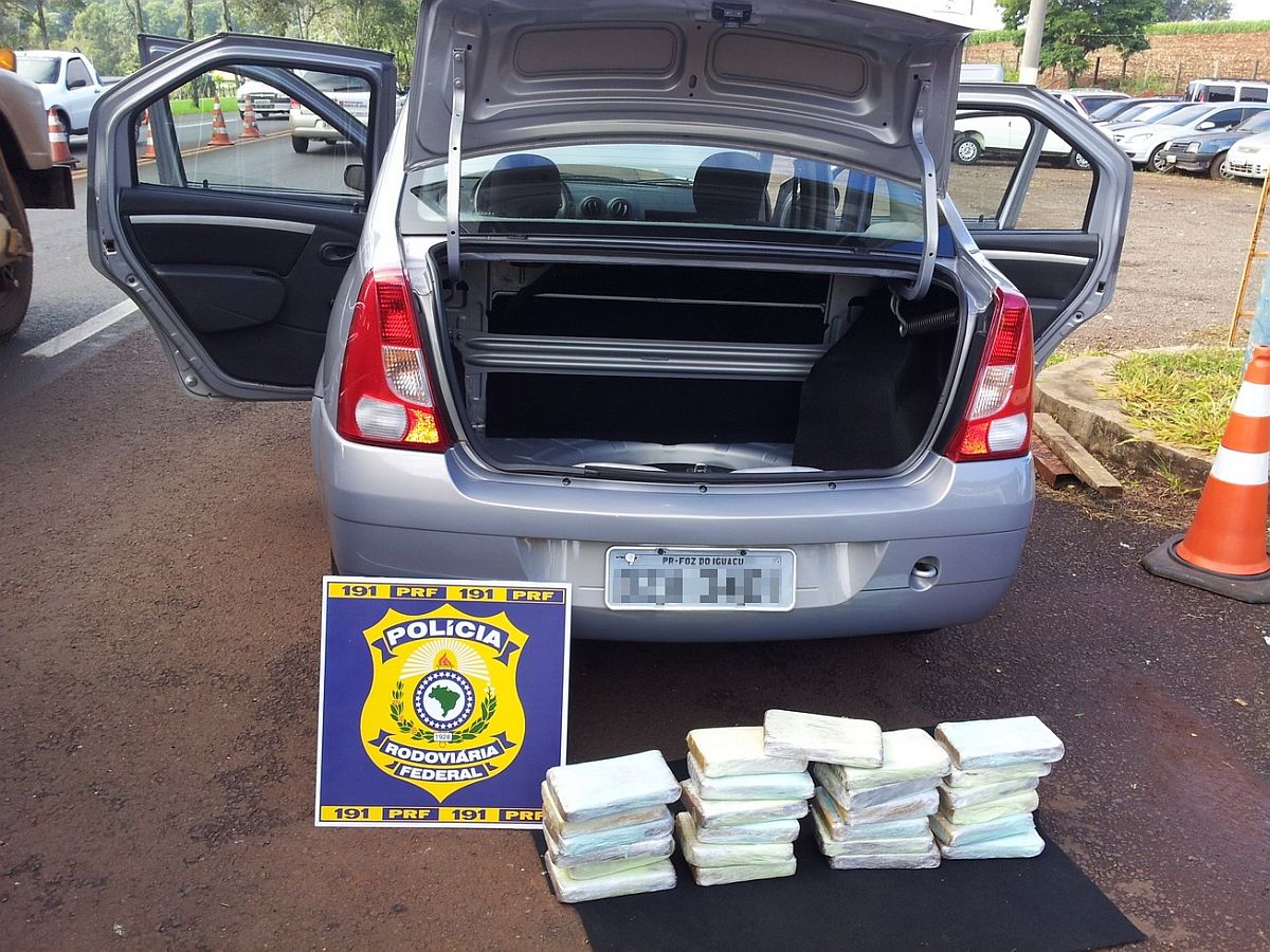 A Polícia Rodoviária Federal (PRF) apreendeu na manhã desta sexta-feira (1º) 25 quilos de cocaína escondidos no fundo falso do banco traseiro de um carro.
