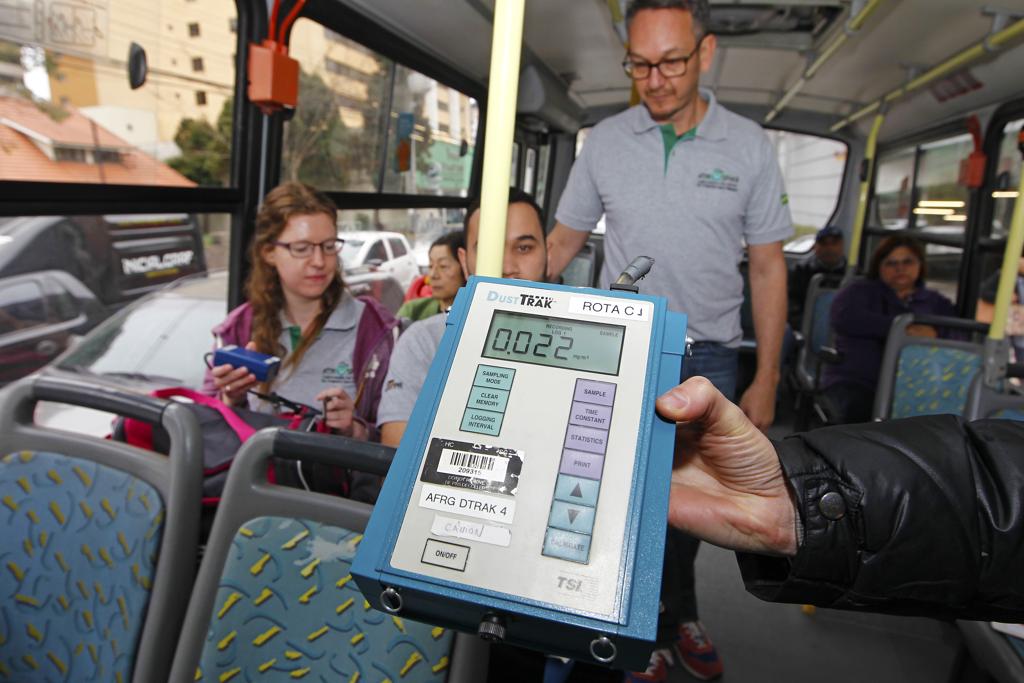 Andar de ônibus é como entrar em uma máquina de poluição ambulante. O próprio veículo emite gases e partículas nocivas, com a queima do combustível. Além de cruzar ruas e bairros onde o ar externo, muitas vezes, é igualmente poluído. Ruim para o passageiro, pior para o motorista, que fica ainda mais sujeito aos impactos da poluição. Para analisar pontos críticos e sugerir melhorias, uma equipe de pesquisadores da Universidade Tecnológica Federal do Paraná (UTFPR) vai analisar a qualidade do ar em ônibus do transporte público em cidades no Brasil, na América Latina e no Canadá. Na última semana de julho, o grupo mediu a qualidade do ar no transporte urbano de Curitiba. Três pontos da capital paranaense se mostraram especialmente perigosos para a saúde de usuários e trabalhadores de ônibus, onde foram localizadas partículas de carbono negro.