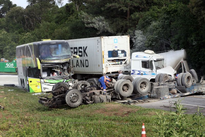 Um acidente na BR-277, em Irati, região Centro-Sul do Paraná, deixou três mortos e uma pessoa gravemente ferida na madrugada desta quinta-feira (22). O desastre ocorreu no quilômetro 219, às 4h30, e envolveu três caminhões, além de um ônibus da empresa Princesa dos Campos. As informações são da Polícia Rodoviária Federal (PRF).