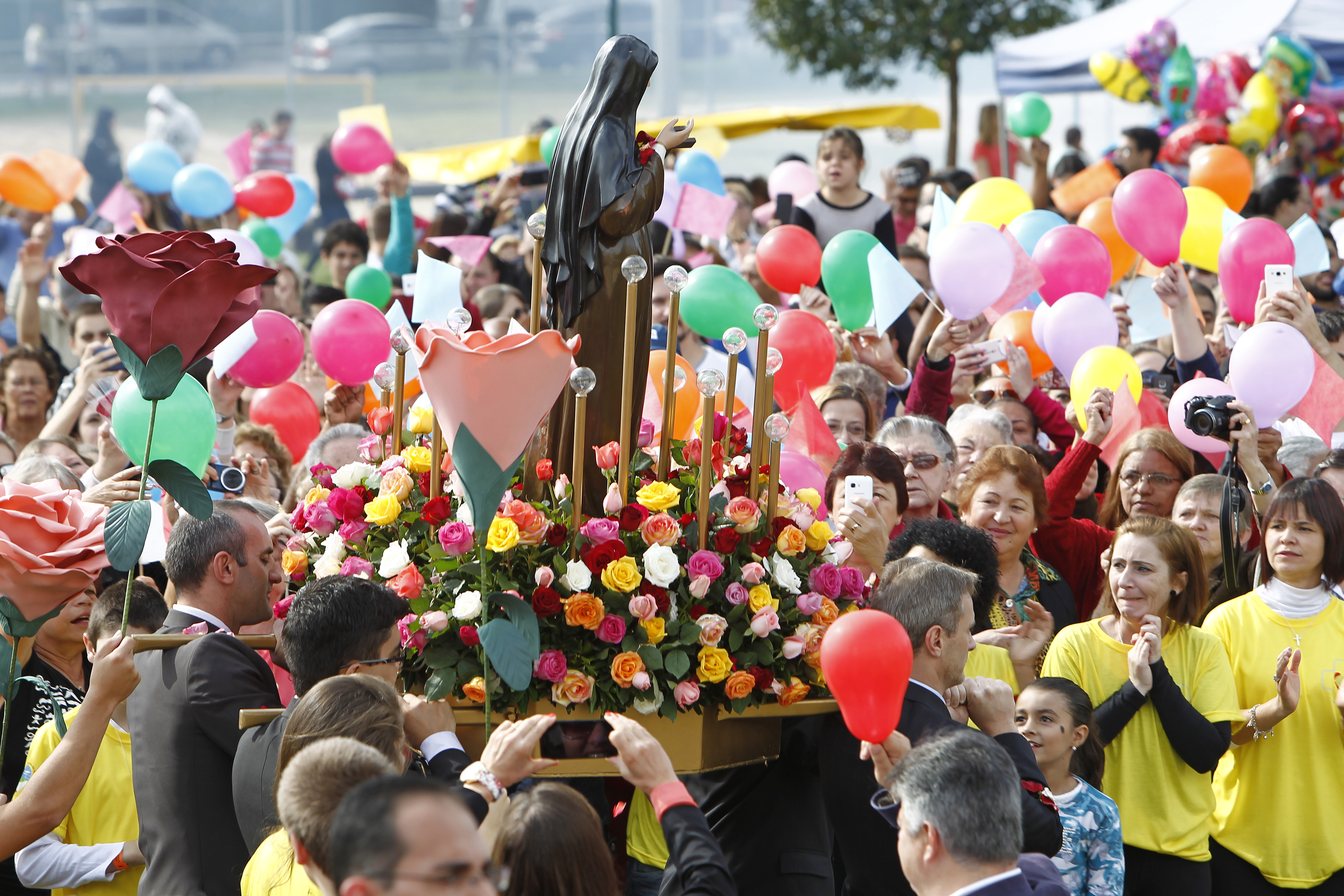 Pétalas foram jogadas de um helicóptero durante a chegada da imagem de Santa Rita ao santuário. Diferentemente dos anos anteriores, desta vez as flores não foram jogadas ao longo de todo o caminho da procissão que realizam com a imagem da santa, porque a Agência Nacional de Aviação Civil (Anac) não permitiu a viagem da aeronave.