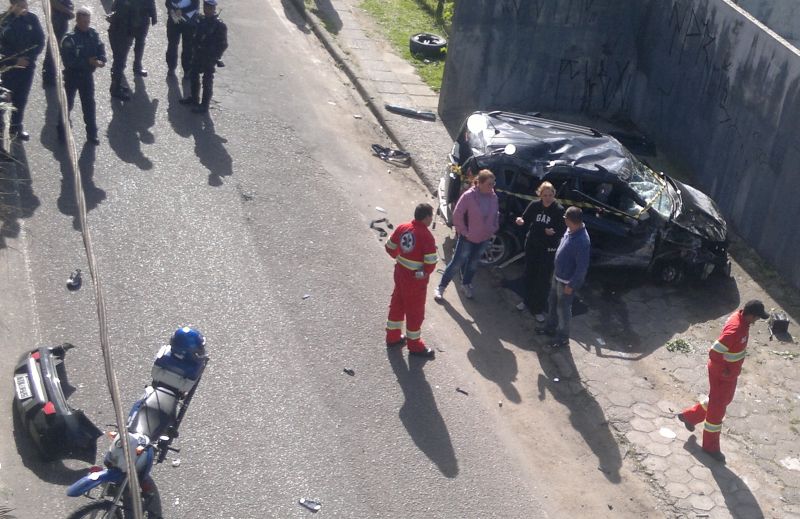 "Por causa da velocidade, o veículo capotou no ar, girou sobre a mureta de proteção do viaduto, e caiu do lado de baixo", contou. De acordo com o guarda municipal, o velocímetro do Kia Soul travou a 180 km/h. O carro ficou destruído após o acidente.