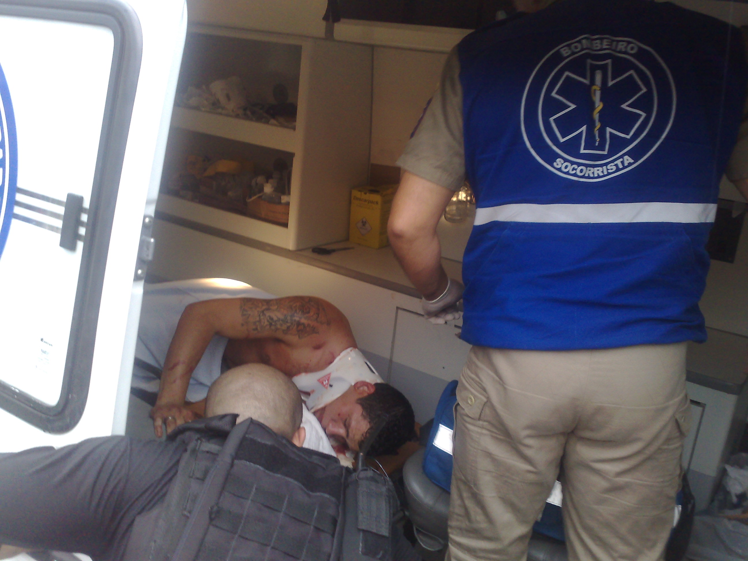 A duas quadras dali, na Rua Jaime Veiga, houve um tiroteio entre policiais e bandidos. Um dos suspeitos, Edivaldo da Silva, de 28 anos, foi atingido por um tiro na boca e um na coxa. Ele foi socorrido e encaminhado ao Hospital Evangélico. Após receber atendimento médico, o suspeito recebeu alta na noite de sexta-feira e foi encaminhado pela PM a uma delegacia da cidade.