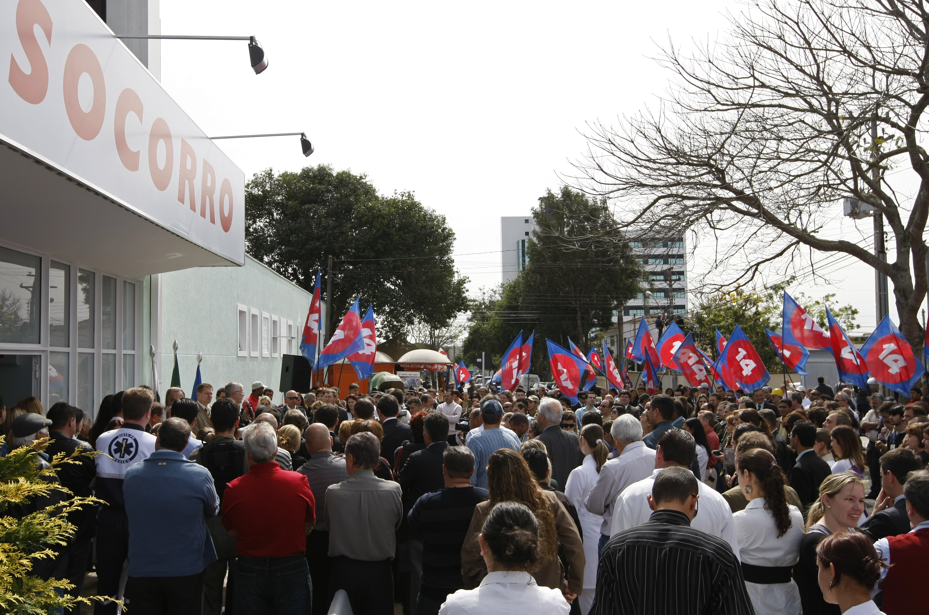 Na mesma rua do hospital, a alguns metros da inauguração, militantes do candidato a prefeito Ivan Rodrigues (PTB) tremulavam bandeiras da campanha de Rodrigues. O candidato fez parte da primeira intervenção administrativa do hospital.