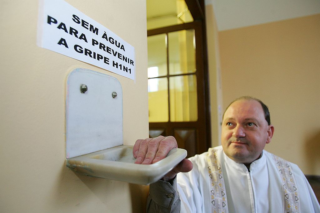 Os fiéis que chegam para as missas na paróquia Nossa Senhora das Graças, no bairro Barreirinha, em Curitiba, não encontram mais água benta na entrada da igreja. A tradição de se benzer antes da celebração está suspensa desde quarta-feira para evitar o contágio da nova gripe. A ideia partiu do Padre Leocádio Zytkowski, preocupado com a disseminação do vírus H1N1, e foi aprovada pelos fiéis.