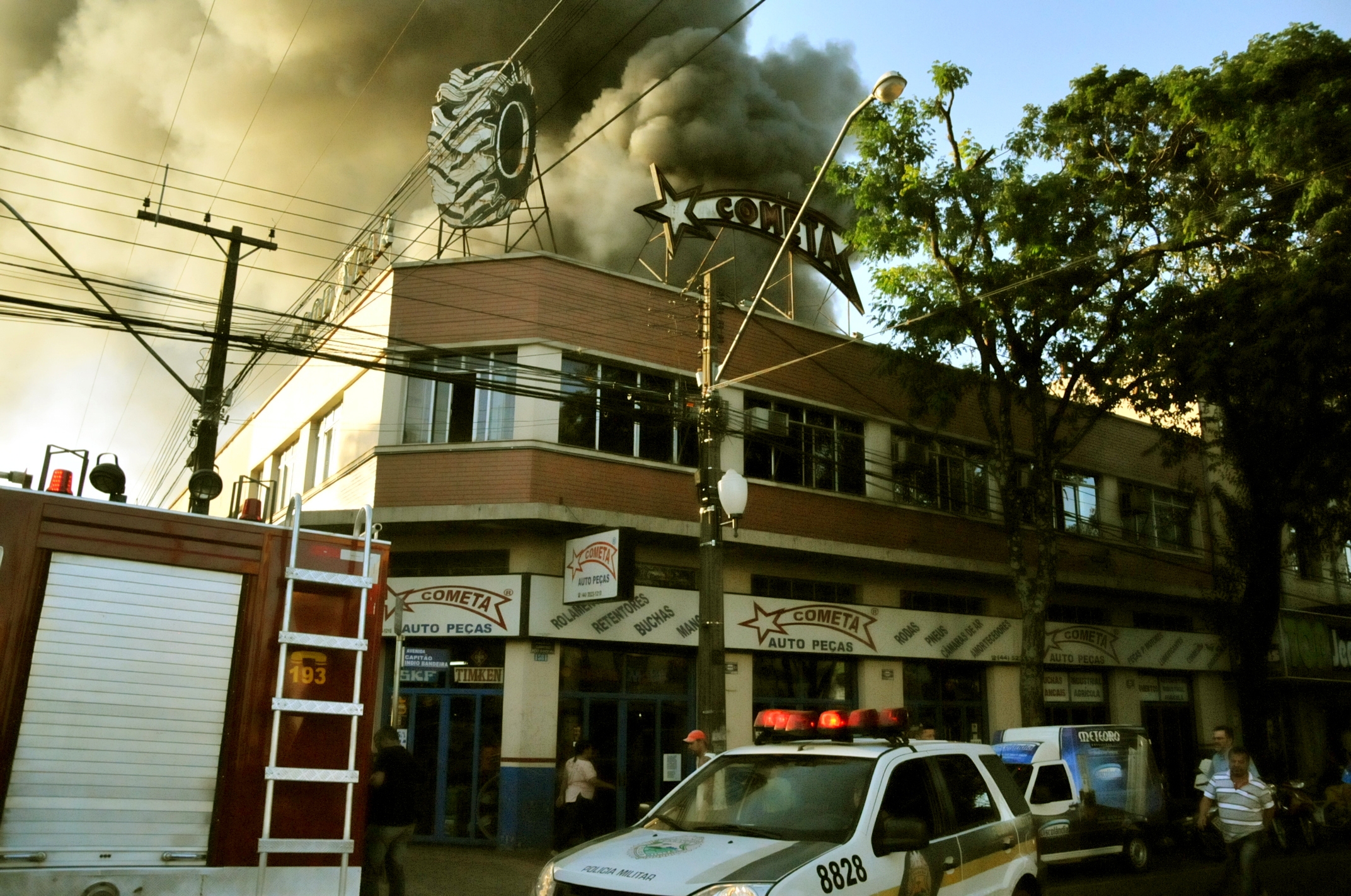 Um incêndio de grandes proporções destruiu na tarde desta segunda-feira (13) parte de uma tradicional loja de autopeças no Centro de Campo Mourão ( na região Centro-oeste do estado). As chamas atingiram o depósito da empresa e alguns apartamentos que ficam ao lado.