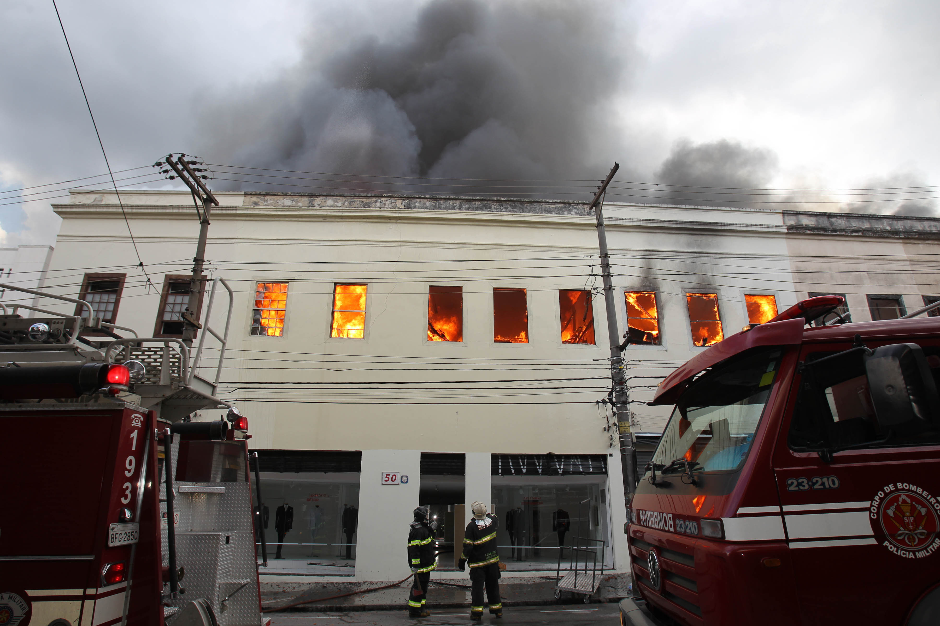 Um incêndio de grandes proporções atingiu na tarde deste sábado (10) um conjunto comercial na Rua São Caetano, esquina com a Avenida Tiradentes, importante via do corredor Norte/Sul, na região central de São Paulo. Pelo menos dez lojas foram destruídas, segundo o Corpo de Bombeiros. A rua São Caetano é conhecida pelo comércio de vestidos e artigos para noivas. Segundo o Corpo de Bombeiros, o fogo foi controlado por volta das 18h20 deste sábado.