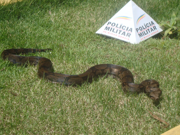 Uma jiboia de dois metros de comprimento foi encontrada dentro da cozinha de uma casa em Uberaba, no Triângulo Mineiro, nesta segunda-feira (20). De acordo com a Polícia Militar do Meio Ambiente na cidade, o morador pediu ajuda para capturar o animal.Dois policiais estiveram no local, dentro do condomínio Village. Segundo a polícia ambiental, a jiboia não estava agitada, o que contribui para um resgate rápido. Foi usado um objeto chamado cambão, que consiste numa corda amarrada a um pedaço de madeira. O animal foi colocado em uma caixa e levado até uma área de reserva ambiental, onde foi solto, de acordo com a polícia.