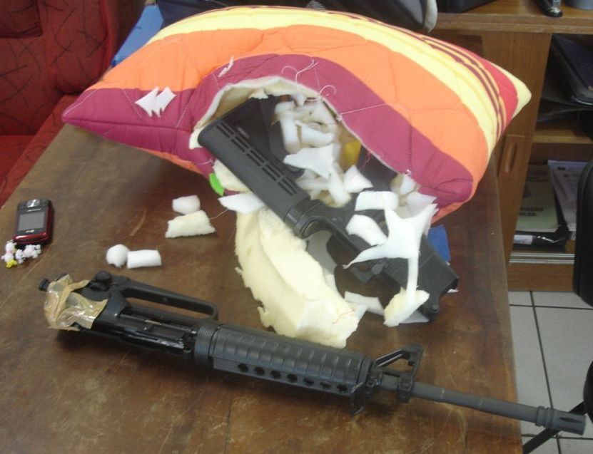 De acordo com a PRF, a jovem Andressa Rodrigues dos Santos afirmou que recebeu R$ 600 para levar a arma de Salto Del Guairá, no Paraguai, até Maringá, no Noroeste. Mas na bagagem, além do travesseiro com a arma, foram encontradas passagens de avião para o Rio de Janeiro. A polícia investiga se a cidade não seria o destino final do fuzil de uso restrito.