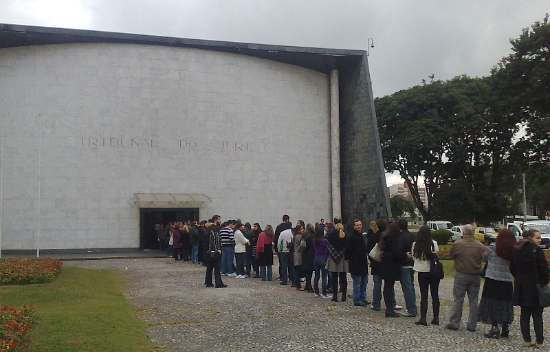 O julgamento de Beatriz Cordeiro Abagge no Tribunal do Júri, no Centro Cívico, em Curitiba, será retomado neste sábado (28). A previsão de início da sessão era 8h30, mas até 9h30 o julgamento ainda não havia começado. Uma fila de pessoas se formou para acompanhar o julgamento.
