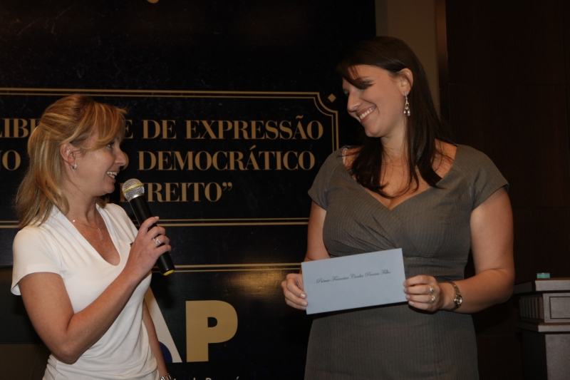 Uma verdadeira celebração à liberdade de expressão ocorreu no início da noite de ontem, em Curitiba, com a entrega do Prêmio Francisco Cunha Pereira Filho à jornalista e advogada curitibana Bianca Botter Zanardi, vencedora do concurso de monografias promovido pelo Instituto dos Advogados do Paraná (IAP). Nesta primeira edição, o prêmio de R$ 50 mil considerado um dos maiores já concedidos em concursos do gênero no Brasil coroou o melhor trabalho jurídico sobre o tema A Liberdade de Expressão no Estado Democrático de Direito. A intenção do IAP é promover o concurso a cada dois anos.