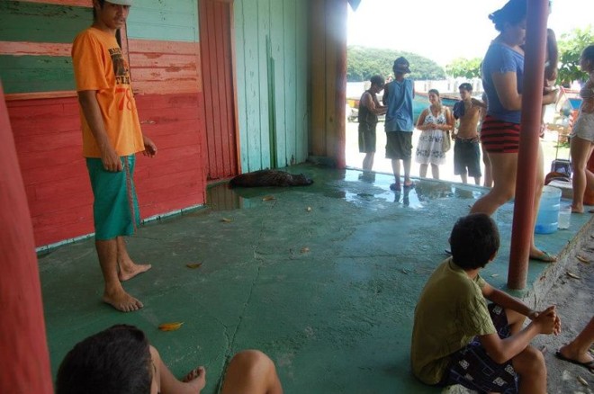 "Estão dando [ao animal] bala, peixe frito, pastel, carne, bolacha e até cerveja. No último sábado, estive lá e até chorei porque pensei que ela estivesse morta porque estava muito cansada", afirma Maria Estela, que diz ter procurado órgãos ambientais.