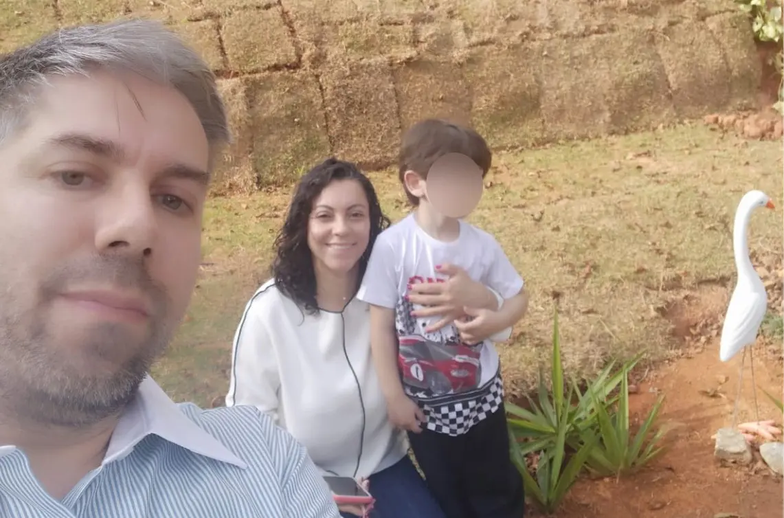 “Ele está passando por psicólogo e psicopedagoga para ajudar na educação, pois não entende que uma mãe que não fez nada fique presa”, relata o pai Alexandre Salles Caiado, que trabalha como mecânico e conta que a esposa havia deixado o emprego de recepcionista para se dedicar ao cuidado do filho (imagem abaixo).