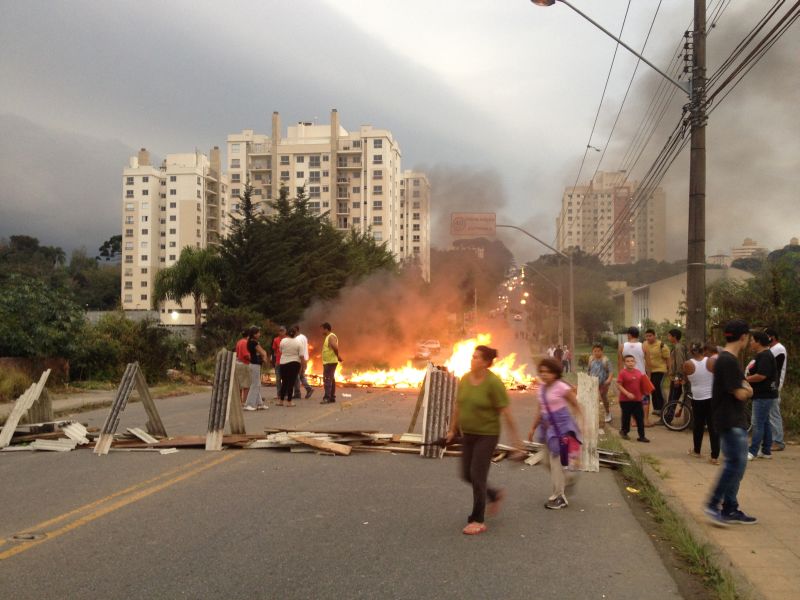 Para bloquear a rua, os manifestantes colocaram fogo em pneus e entulhos que foram jogados na ponte sobre o Rio Barigui. O tráfego foi desviado pela Polícia Militar por ruas paralelas e não chegou a ser registrado congestionamento na região. Agentes da Secretaria de Trânsito (Setran) também estiveram no local. O Corpo de Bombeiros também mandou equipes para o local.