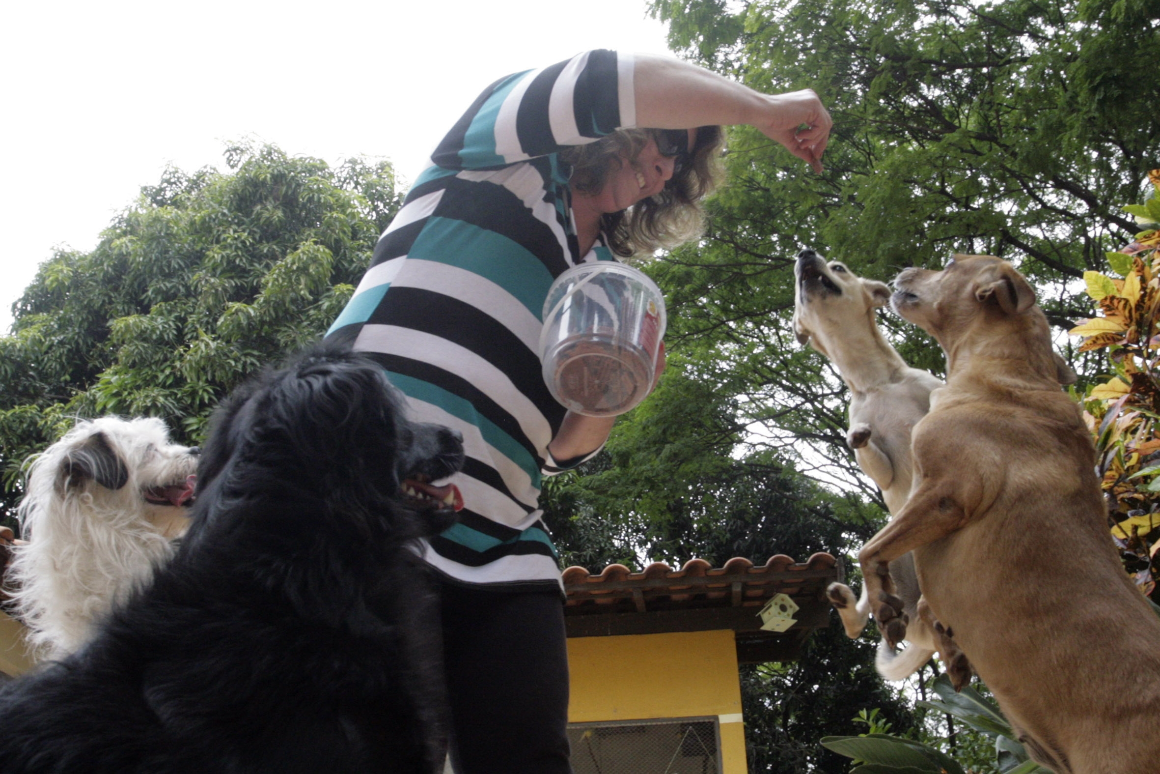 Na tentativa de fazer algo, juntamente com algumas vizinhas, por cerca de dois meses ela levou água e comida para os moradores do terreno. O cuidado passou a fazer parte da rotina de Maria, até que um temporal ameaçou assolar a tranquilidade dos bichinhos. "Quando vi o tempo de chuva, nem quis saber se meu marido iria reclamar, busquei os dois, coloquei em casa e disse que no outro dia pensaria no que ia fazer."