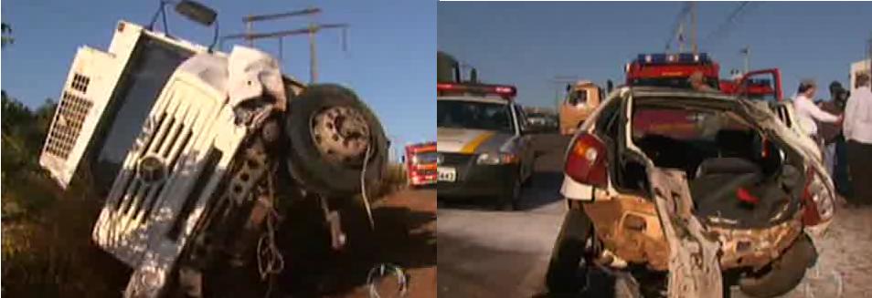 Colisão frontal entre um Palio e um caminhão foi tão violenta que a vítima foi arremessada para fora do automóvel