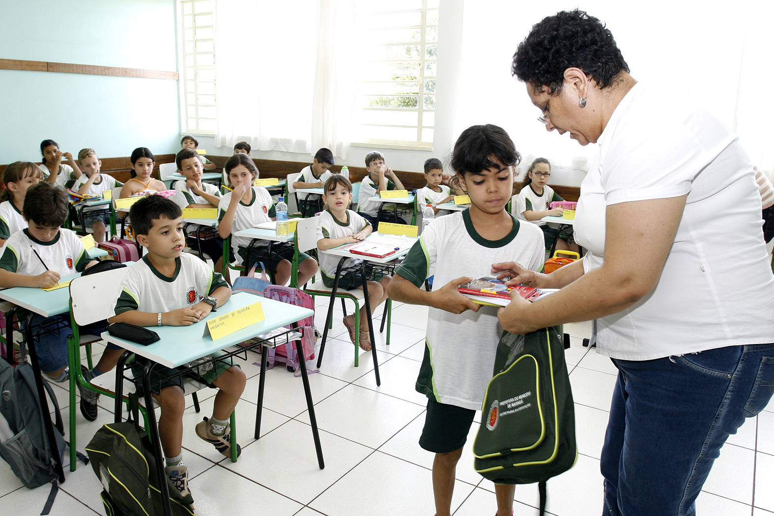 Os quase 30 mil alunos da rede municipal de ensino de Maringá ainda não receberam, neste ano, os kits escolares, formados por uniforme e material escolar, a que têm direito. A entrega deve ser feita, segundo a Secretaria Municipal de Educação (Sedu), na quarta semana de março. Isso significa que os estudantes ficarão um mês e meio sem os materiais, pois as aulas começaram em fevereiro.