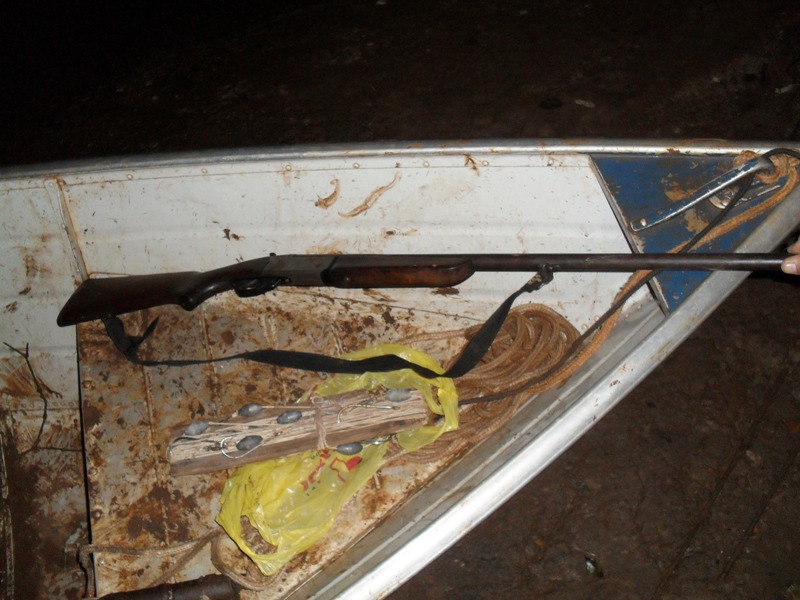 Junto com os caçadores foram encontrados uma espingarda do tipo cartucheira calibre 20 e mais quatro cartuchos carregados. No veículo da dupla, os policiais acharam outros dois cartuchos de calibre 32 intactos. Ainda foram apreendidos o motor de popa e a embarcação utilizada na prática do crime.