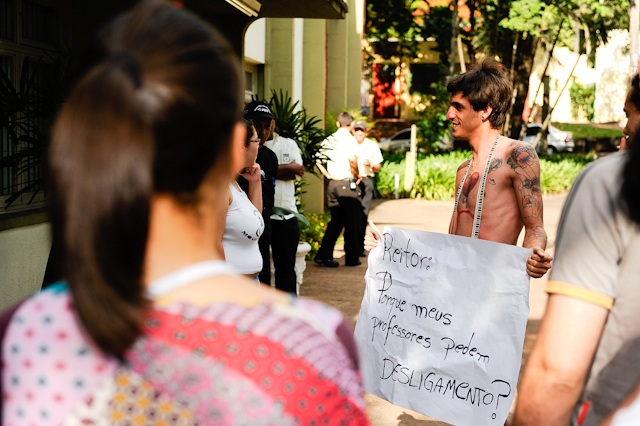 Estudante tira a roupa na UEM em protesto contra saída de professores