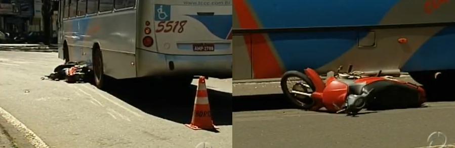 Um motociclista foi parar embaixo de um ônibus do transporte coletivo de Maringá após um acidente de trânsito, no inicio da tarde desta terça-feira (5). O acidente aconteceu na rotatória da Praça 7 de Setembro, na Zona 6, em Maringá, por volta das 12h30. O motociclista foi socorrido pelos bombeiros e teve apenas ferimentos leves, segundo a RPC TV Maringá.