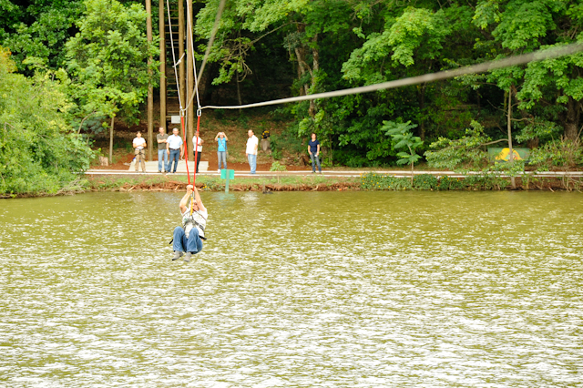 Jornalistas e vereadores visitaram o Parque do Ingá, fechado há mais de um ano e meio. Quando reabrir, o parque terá uma tirolesa sobre o lago (Foto: Fábio Dias/Gazeta Maringá)