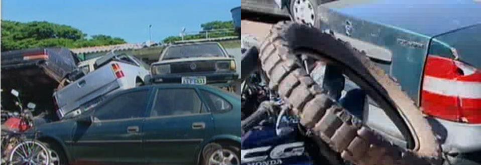 São centenas de carros e motos amontoados no pátio e que juntam água nos pneus e em outras partes. "Nos não temos um local adequado para colocar esses veículos. O certo seria um local coberto. Nós até tentamos fazer um processo de licitação para locar um barracão aqui, mas houve um corte de despesa e Sarandi não foi contemplada com essa locação", disse o delegado Lima.