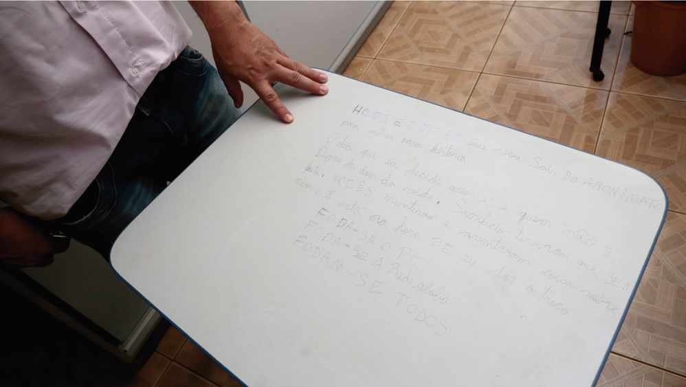 Após deixar as palavras de ódio na carteira em que estudava, segundo a polícia, o adolescente vagou pelas ruas de Marilândia do Sul, foi até a igreja e por lá tomou um copo de água. No caminho chegou a cruzar com um carro da PM e ao avistar o cabo Luiz Fernando, da Patrulha Escolar, desviou o olhar. “Ele sempre me cumprimentava e naquele dia foi diferente. Ao saber dos crimes, antes mesmo de irmos até o sítio, voltamos e o apreendemos no ponto de ônibus. Ele não resistiu e confessou tudo.”