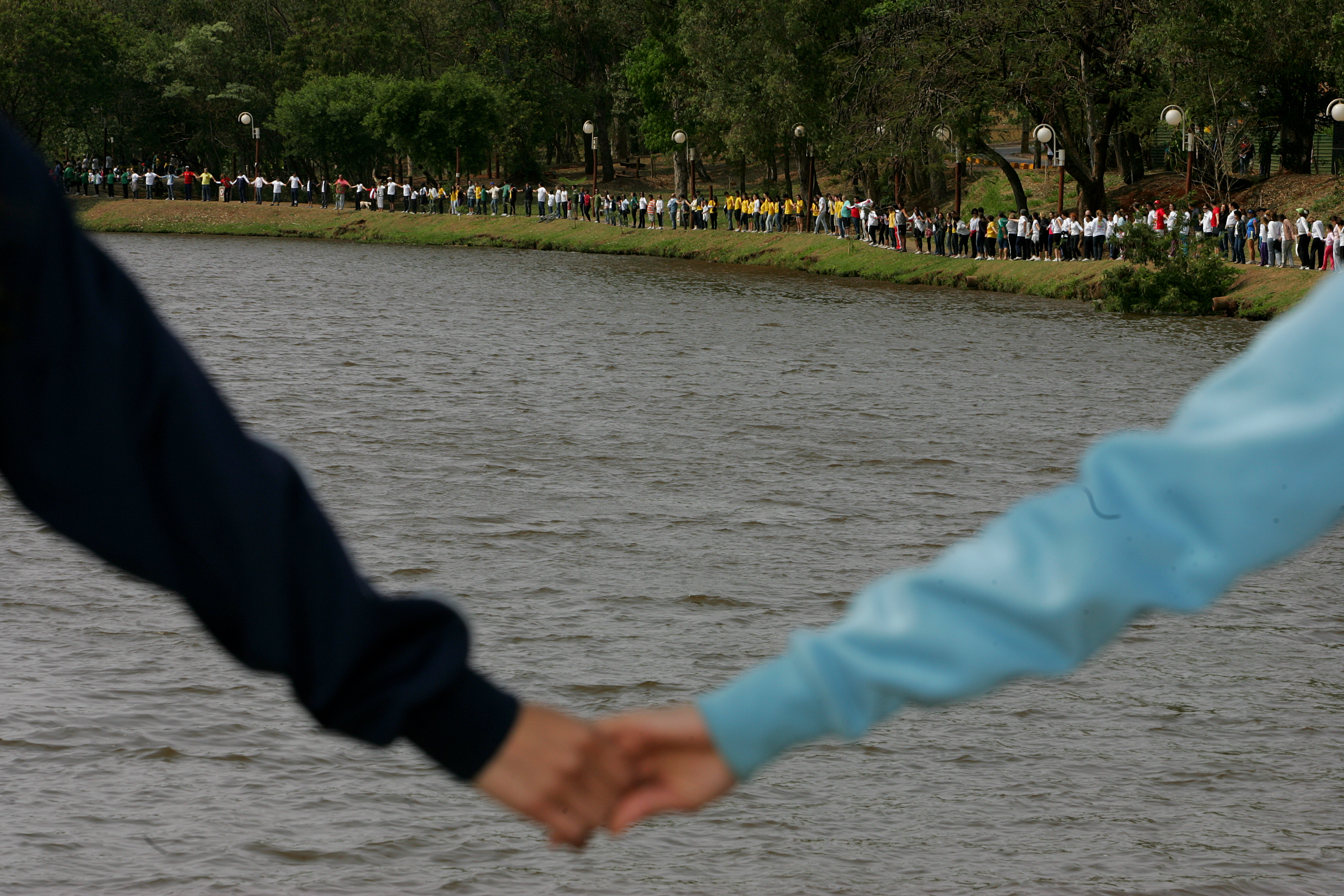 A quantidade de pessoas foi insuficiente para que fechasse os lados, mas cobriu mais da metade do lago. Segundo o presidente da ONG Londrina Pazeando, Luis Cláudio Galhardi, e um dos organizadores do evento, ao lado do Conselho Municipal de Cultura de Paz (Compaz), o movimento está crescendo ano a ano. A expectativa inicial era que cerca de 2.400 pessoas, quantidade que daria para contornar o lago, participassem. "Tivemos entre 1.000 e 1.200 pessoas. Foi bom, mas acredito que ano que vem teremos mais pessoas", afirmou.