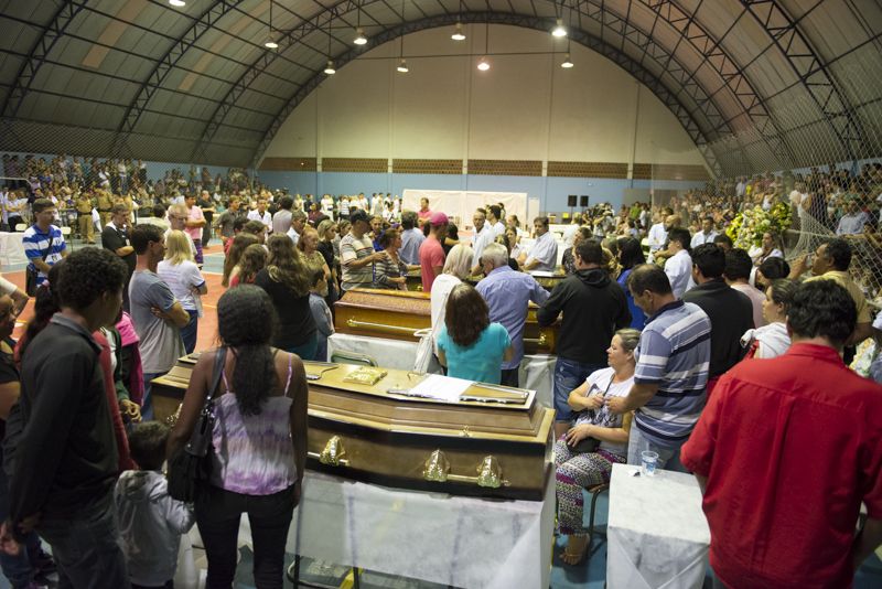 Uma multidão se aglomerou do lado de fora do Ginásio Municipal Benedito José Maria Albino no fim da noite deste domingo (15). São amigos, parentes e conhecidos das vítimas. O clima na cidade é de choque, todos se dizem perdidos e não sabem o que fazer.