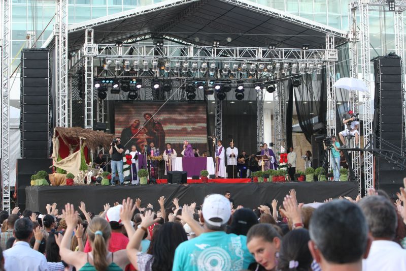 Cerca de 4 mil pessoas se reuniram na tarde de ontem na Praça Nossa Senhora de Salete, no Centro Cívico, para participar do evento Missa por um Natal Solidário, em Curitiba. Realizada pela Arquidiocese de Curitiba, em conjunto com a Associação Evangelizar é Preciso, a celebração começou às 16 h da tarde e seguiu até 21h30, aproximadamente. As ruas entre a praça e o Palácio Iguaçu foram fechadas, o que não chegou a prejudicar o trânsito da região.