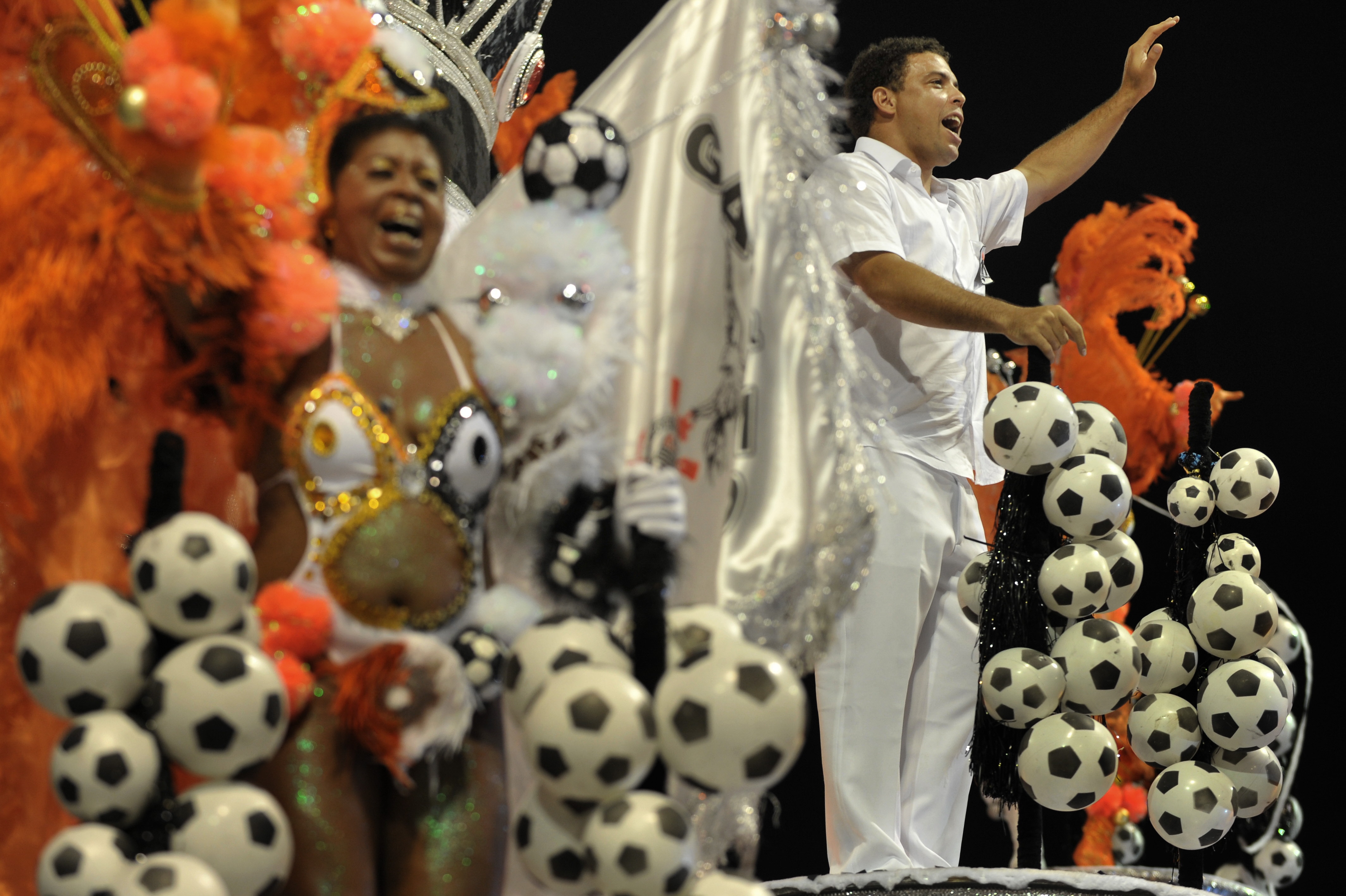 Uma das celebridades estreantes em São Paulo foi o jogador Ronaldo, que desfilou na escola que celebrava os 100 anos do Corinthians. A presença dele chegou a gerar dificuldade para fechar os portões após o desfile. Muitos integrantes de alas se acumularam para ver o jogador de perto, que desfilou no último carro.
