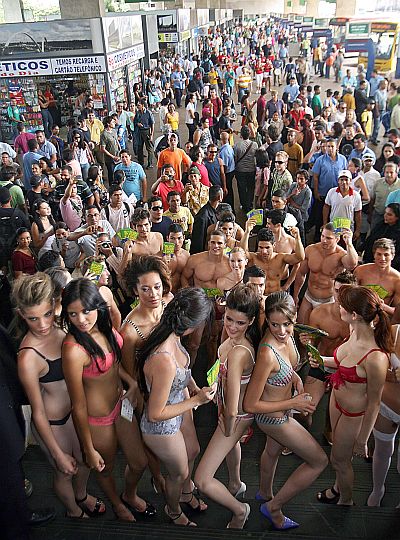 Um desfile parou a região da Rodoviária do plano Piloto, em Brasília, nesta terça-feira (17). Em comemoração ao Dia Nacional da Roupa de baixo, vários modelos desfilaram, mas as mulheres estavam só de calcinha e sutiã e os homens só de cueca.