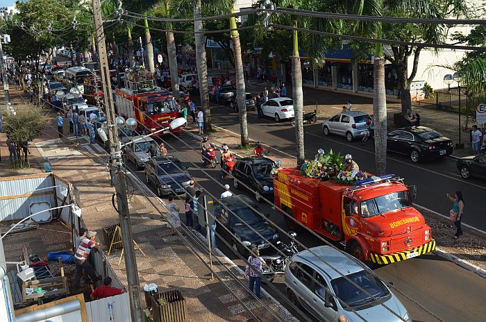 Moradores foram às ruas e comerciantes baixaram as portas para homenagear os PMs. O cortejo percorreu as principais ruas da cidade.