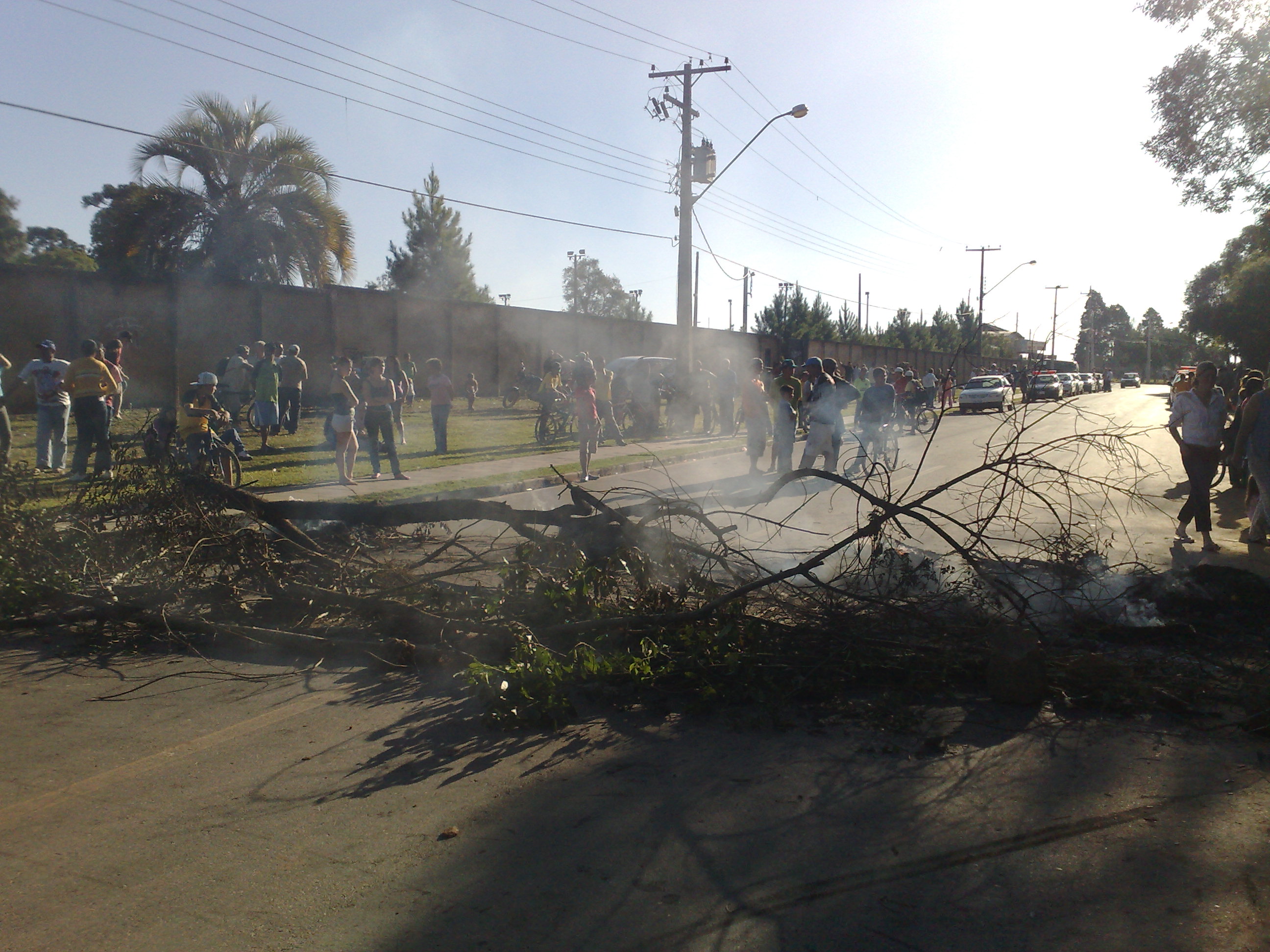 Cerca de 200 pessoas bloquearam a Avenida Portugal, em Fazenda Rio Grande, na região metropolitana de Curitiba, por volta das 14 horas desta quinta-feira (21). Os manifestantes são moradores dos bairros Gralha Azul e Nações. Eles reclamam da falta de segurança na região. O grupo queimou galhos de árvores no meio da avenida para bloquear o trânsito, que só foi liberado às 17h30.