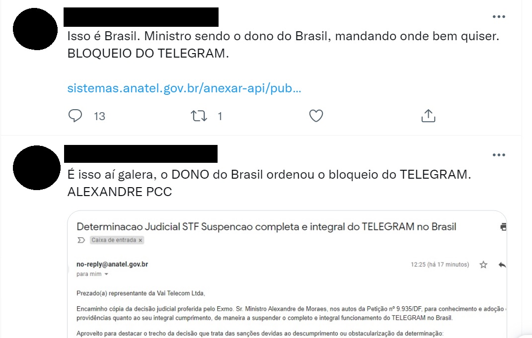 Além de determinar o bloqueio de um serviço, o Telegram, de forma sigilosa, o ministro do Supremo Tribunal Federal (STF), Alexandre de Moraes, instaurou nesta sexta-feira (18) um inquérito para investigar o vazamento da decisão para os meios de comunicação. No despacho em que informa sobre a abertura desta investigação, o ministro pede que seja encontrado, para depoimento na Polícia Federal, o dono de um perfil que continha as informações do bloqueio, tais como o documento enviado para Moraes ao presidente da Anatel, Wilson Diniz Wellisch.