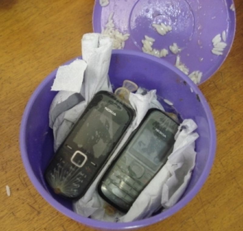 Os celulares foram apreendidos durante a inspeção de rotina antes da visitas aos presos, segundo a Polícia Civil. Os aparelhos estavam dentro de uma marmita de plástico e foram embalados com preservativos.